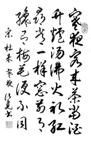 | 书法·寒夜客来茶当酒,竹炉汤沸火初红。寻常一样窗前月,才有梅花便不同。