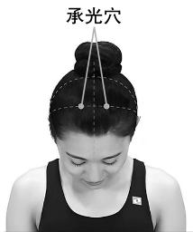 承光穴位于人体头部,在前发际正中直上2.5寸,旁开1.5寸处。拍打前,先搓热双手,然后用手心对准承光穴的两侧,按照一定的节奏进行拍击。推荐的节奏是连续拍击2次或3次,持续轻拍1—2分钟。(厦门大学附属眼科中心主任医师 张广斌)