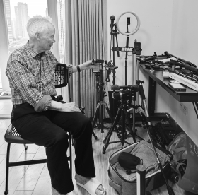 “这个相机是拍Vlog(视频日志)的,这个小摄影机是自拍用的,这个电脑是直播间的同款电脑,还有补光灯、投影仪、轮廓灯。”4月25日,湖南长沙94岁的陈邦玉将记者迎进他的摄影棚,说起自己的各种设备。 退休后,陈邦玉就开始为了梦想而不断折腾。他身上,一直有着年轻人不肯妥协的那股劲儿。这几年,网络直播兴起,陈邦玉为了学习直播和短视频,还报了几个班。91岁那年,陈邦玉决定在自己的房子里改造出一个摄影棚,用于拍摄和直播,“我有很多故事想分享,直播是个不错的方式”。这次改造,家里人都不太同意,但陈邦玉坚持要搞。“我和女儿们说好了,不用她们出钱,她们也不能插手。我把自己的12万元积蓄全拿出来了,这几年的退休金也基本用完了”。 陈邦玉不是湖南长沙人。他1930年出生于福建省连江县,一度在河南郑州工作,后调到长沙。他1992年从单位退休后,到外地工作了几年,直到2000年才彻底告别工作。2003年后,新买的房子装修完成,陈邦玉开始为了爱好而奔走——当背包客到处旅游。“我的退休金不高,想多走些地方就只能穷游。我住青年旅社,找人搭车或者拼车。2014年上半年我去了台湾,找了之前认识的一位台湾背包客,她介绍我去了不少地方。这些年下来,我基本走遍了全国各地”。 去西藏那次,陈邦玉遭遇了一番波折。“2014年下半年,有背包客约我去西藏。我们在株洲会合,到了云南,有两个人说不去西藏了,另外一个同伴也抛弃了我。我在云南大理、丽江玩了几天后,还是想着要去西藏,便辗转去了四川理塘。我在那里遇到几位陕西游客,和他们一起拼车去了西藏”。 2016年,陈邦玉做了心脏手术,随后几年减少了外出,认真研究摄影。每次看到新出的装备,他就会记下来,找朋友帮他买。目前,陈邦玉的摄影棚改造完成,他计划今年下半年开始自己的直播。“我还想再折腾下去,去做我想做的事。不过,我现在也只是做些力所能及的事情,太大的事情也干不了。”陈邦玉说,“我总觉得时间不够用,还想再多学习一些东西。我也希望借助《快乐老人报》找到一些会剪辑的朋友,一起交流学习。”(本报记者刘祺力)