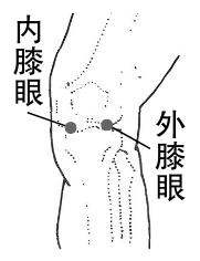 膝眼穴 位于膝盖骨两侧的凹陷处。
