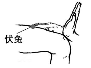 伏兔穴 在大腿前部中间,离膝盖一掌处。