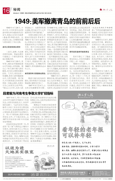 1949年4月28日,中共中央、中央军委发出《同意对青岛举行威胁性攻击》命令,批准山东军区发起青(青岛)即(即墨)战役。这次战役之前,人民解放军就与美军进行了多次交锋。 美军企图登陆烟台遭拒 二战后,旅顺、大连被苏联所控制。美国急需在中国建立一个新的海军基地以制衡苏联。 1945年9月29日,美军第七舰队派军舰驶抵烟台市外海面,企图登陆。烟台已于8月24日被八路军解放,美方的无理要求遭到拒绝。几天后,美军送来一份通牒,要求八路军撤离烟台市,交美方接管。10月6日,叶剑英参谋长给美军联络组一项备忘录称,朱德总司令已向美军总部声明:“烟台已无日军,而在八路军控制之下。如果美军在烟台登陆,将引起中外人士怀疑美军在干涉中国内政。” 在烟台登陆无望后,美国海军陆战队第6师于1945年10月9日登陆青岛,在青岛市太平路设立了美国海军西太平洋舰队司令部。蒋介石对此采取许可的态度。因为美军进驻青岛,对蒋介石内战布局有直接好处。10月11日至12日,2.7万名美军相继在青岛码头登陆。1946年5月13日,美国海军第七舰队抵达青岛。从1945年到1949年,美军盘踞青岛达4年之久。 美军提四种方案想赖在青岛 随着中国全面内战的爆发,美军和蒋介石的如意算盘都让解放军打乱了。 1947年3月至4月,山东胶济线被解放军切断。到1948年初,在整个山东半岛,国民党方面只剩下济南和青岛两座孤城。在这种情况下,美方认为青岛是美方抗衡苏联的重要据点,即便国民党青岛防卫力量靠不住,也不能轻易放弃。为此,美方假设解放军进攻青岛,提出了四种应对处置方案:一是对国民党军队提供援助,使其能保卫城市及城郊的飞机场和水上设施;二是不靠国民党方面,由美方单独来保卫重要设施;三是一旦需要,将美方人员和设施从国共战争波及地区撤离;四是将美国设备和非战斗人员撤离,武装部队继续留在附近舰上,行动视中国内战进程而定。 1948年9月,解放军解放济南,青岛成为国民党在山东的军事孤点。美方经过紧急磋商,多方权衡认为如果美军继续坚持在青岛驻军,将会冒着与中共开战的危险,这无疑会损害美方的利益。因此,美军从青岛撤退是明智的选择。为了保全自己的面子,美方劝说蒋介石将中央海军训练中心从青岛搬到厦门或台湾。到时美军设施也跟着撤出青岛,自然就不会给世人留下美方单方面撤退的印象。 青即战役逼美军撤离青岛 美军尽管已下了撤离青岛的决心,但在具体撤军日程上,却一再推迟。 1949年4月28日,中共中央、中央军委批准山东军区发起青即战役,解放青岛。毛泽东亲笔起草命令:“同意对青岛举行威胁性攻击,第一步集十二个团,对若干据点试行攻击。得手后看情形再决第二步行动。其目的,是迫使敌人早日撤退,我们早日占领青岛,但又避免与美军作战(此点应与部队干部讲明白)。”在复杂的国际国内形势面前,毛泽东是在中共对美政策大格局中思考解放青岛问题的。 1949年5月3日,青即战役拉开序幕。解放军山东军区兵分三路,由北向南推进。在与国民党军作战中不主动进攻美军,只有当美军直接参加作战时,才予以有理、有利、有节的自卫还击。6月2日,三路大军胜利会师青岛市政府,青岛宣告解放。战役进行中,美军隔岸观火,未敢放一枪一炮。解放军也未向美军发起攻击。 1949年5月25日,青岛市区已经能听到解放军隆隆的炮声,尽管美军一直在寻求一种体面撤离的方式,但最终还是在这一天的解放军炮声中,很不体面地撤离了青岛。(摘编自《党史博采》)