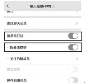 家族群、同学群、广场舞群、摄影群、团购群……微信里的群越来越多,群消息也多,长期霸占微信的前排。这些群退又不能退,但是又经常因为它们把其他消息挤到了下面,导致自己漏掉了一些重要信息。怎么解决这个问题?把微信群折叠起来就可以了。(整理/本报记者刘霞) 第一步 打开微信,找到想折叠的微信群,点击该群后,进入聊天信息界面,再点击右上角的“…”图标。 第二步 将页面下拉至“消息免打扰”选项,将右侧开关打开至绿色。接着,将下面的“折叠该群聊”选项,同样打开至绿色。 第三步 按照上述步骤,依次把所有想要折叠的群进行设置。接着,返回微信页面,可以看到出现了一个“折叠的群聊”选项,点击打开,可以看见所有被折叠的群聊。 第四步 折叠后,如果还想关注群内重要成员发送的消息,也很简单,只需回到第二步,在“折叠该群聊”的选项下方,有一个“关注的群成员”选项,点击。 第五步 点击后,添加需要关注的群成员即可,最多可关注4个群成员。这样,只要关注的群成员在群内说话,您还是可以收到群消息提醒。