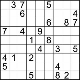 请根据图中的已知数字,推理出所有剩余空格的数字,并满足每一行、每一列以及每一个粗线宫格(3×3)内的数字均含1—9,且不重复。
